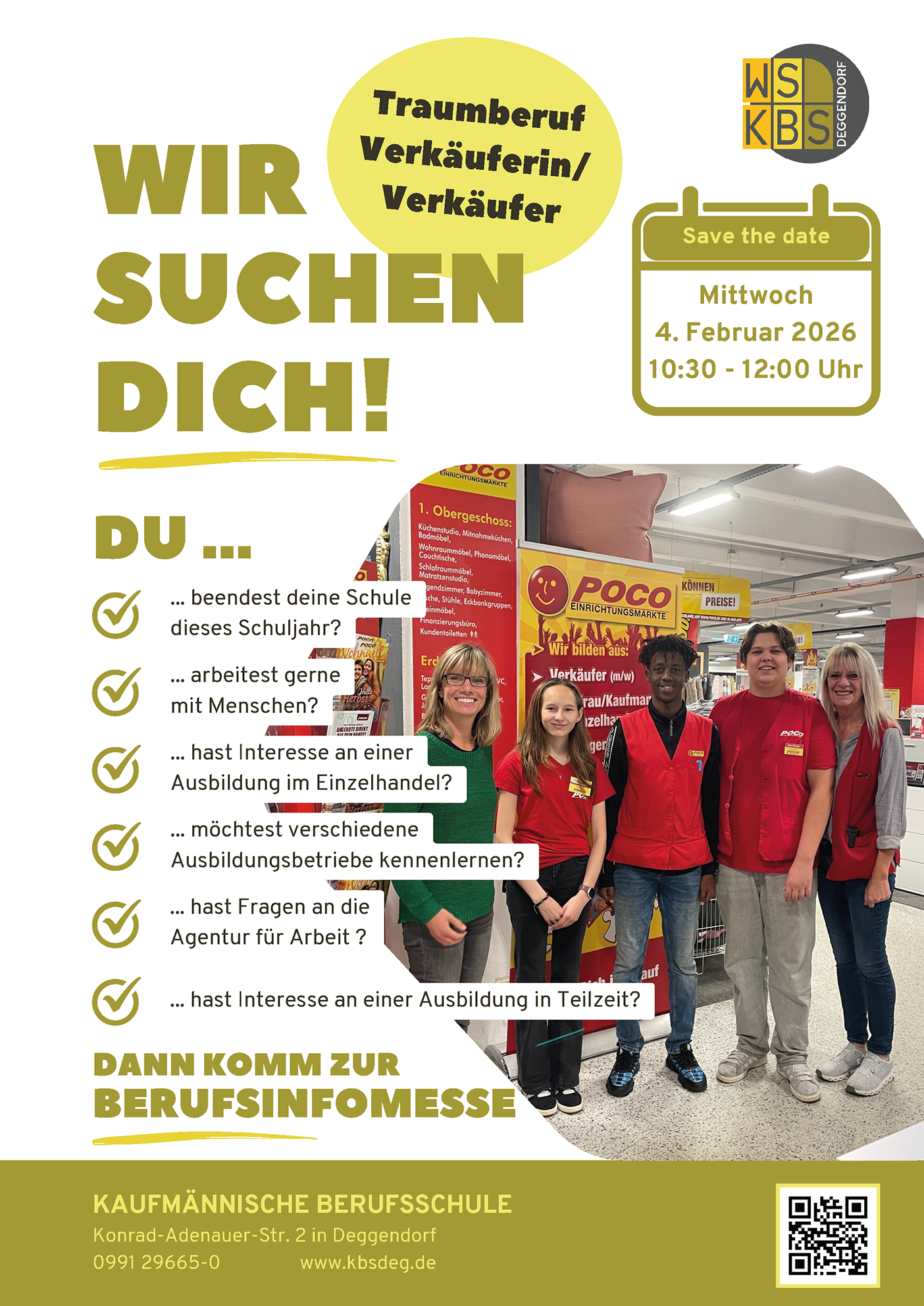 An der Kaufmännischen Berufsschule Deggendorf begleiten wir junge Menschen auf ihrem Weg in die berufliche Zukunft. Wir bieten ein breites Spektrum an kaufmännischen Ausbildungsrichtungen – von der Finanzwelt über Verwaltung und Handel bis hin zu internationalem Wirtschaftsverkehr. Ergänzt wird unser Angebot durch ein praxisnahes Berufsvorbereitungsjahr (BVJ), das den Einstieg ins Berufsleben erleichtert.